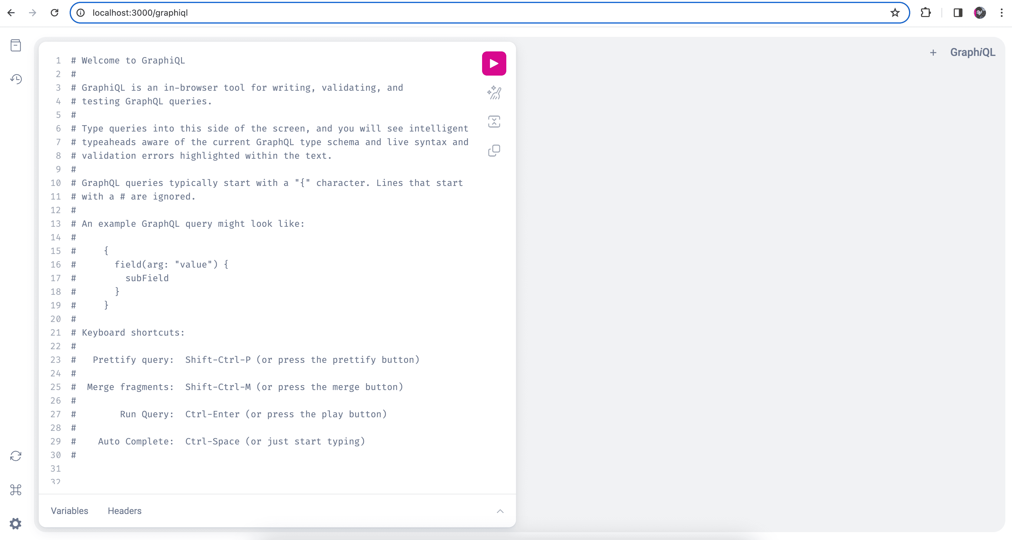 navigate to localhost:3000/graphiql in your browser.