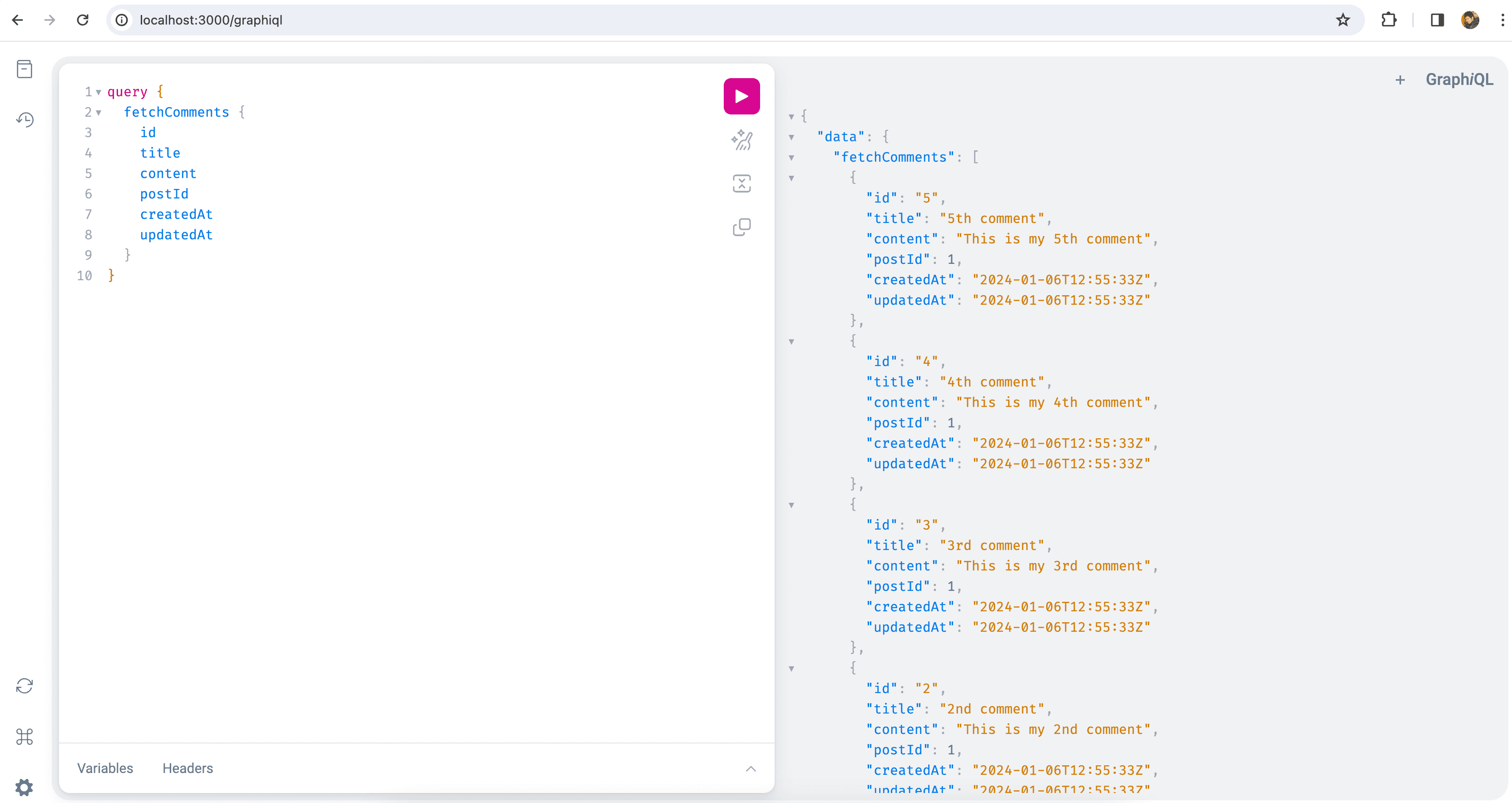 == 20240106111859 CreateComments: migrated (0.0121s) ==========================To verify the GraphQL API,