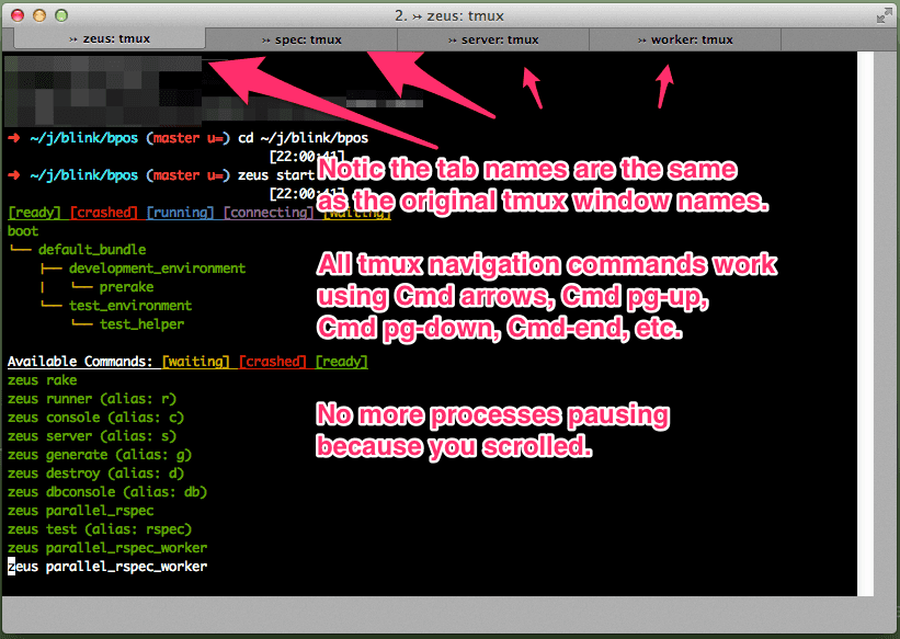 Rocking with tmux, tmuxinator, Guard, Zeus, and iTerm2 for Rails Development