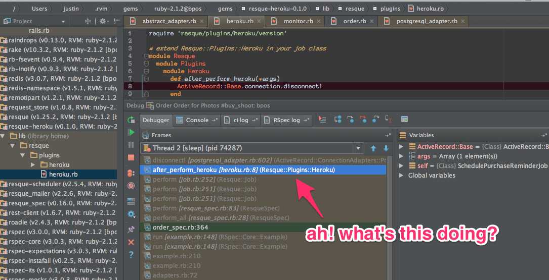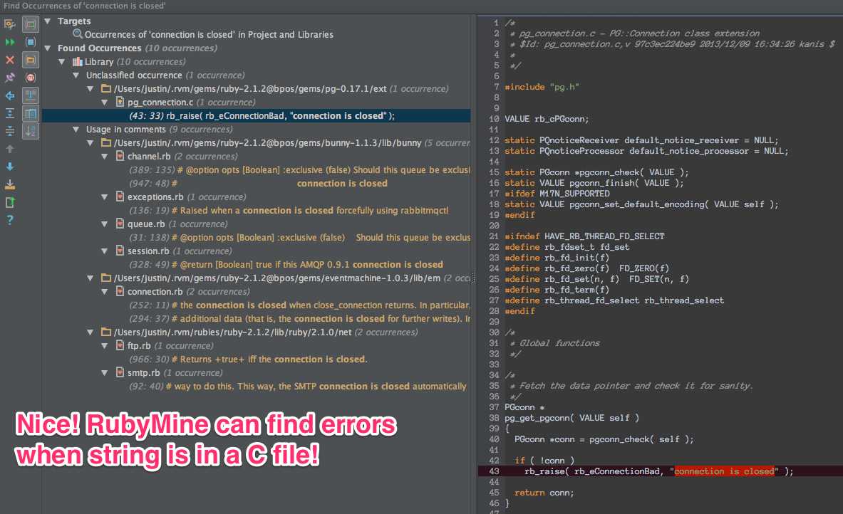Troubleshooting with RubyMine "Find In Path" and the Debugger